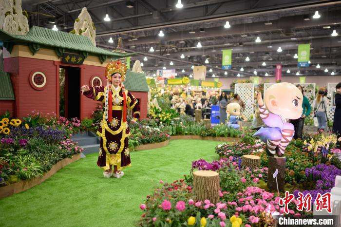 當(dāng)?shù)貢r(shí)間3月2日,一年一度的費(fèi)城花展在美國(guó)賓夕法尼亞州費(fèi)城開(kāi)幕,以“功夫鄭州——花俏嵩山”為主題的鄭州展園當(dāng)天在花展上亮相。圖為鄭州市豫劇院演員袁娜表演豫劇?!ranck Zhou 攝