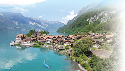 瑞士村莊伊瑟爾特瓦爾德位于阿爾卑斯山布里恩茨湖岸邊,風(fēng)景如畫,村中自建房與周邊自然環(huán)境融為一體。