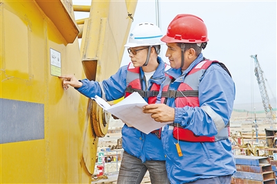 項(xiàng)目部技術(shù)專家專門研發(fā)了海上高智能化超大型自移動(dòng)式打樁平臺(tái)等大型專業(yè)設(shè)備,不僅實(shí)現(xiàn)了施工預(yù)期目標(biāo),保護(hù)了施工海域水質(zhì)和生物,還實(shí)現(xiàn)了沉樁作業(yè)全季節(jié)、全時(shí)段施工,大大提高了施工效率。