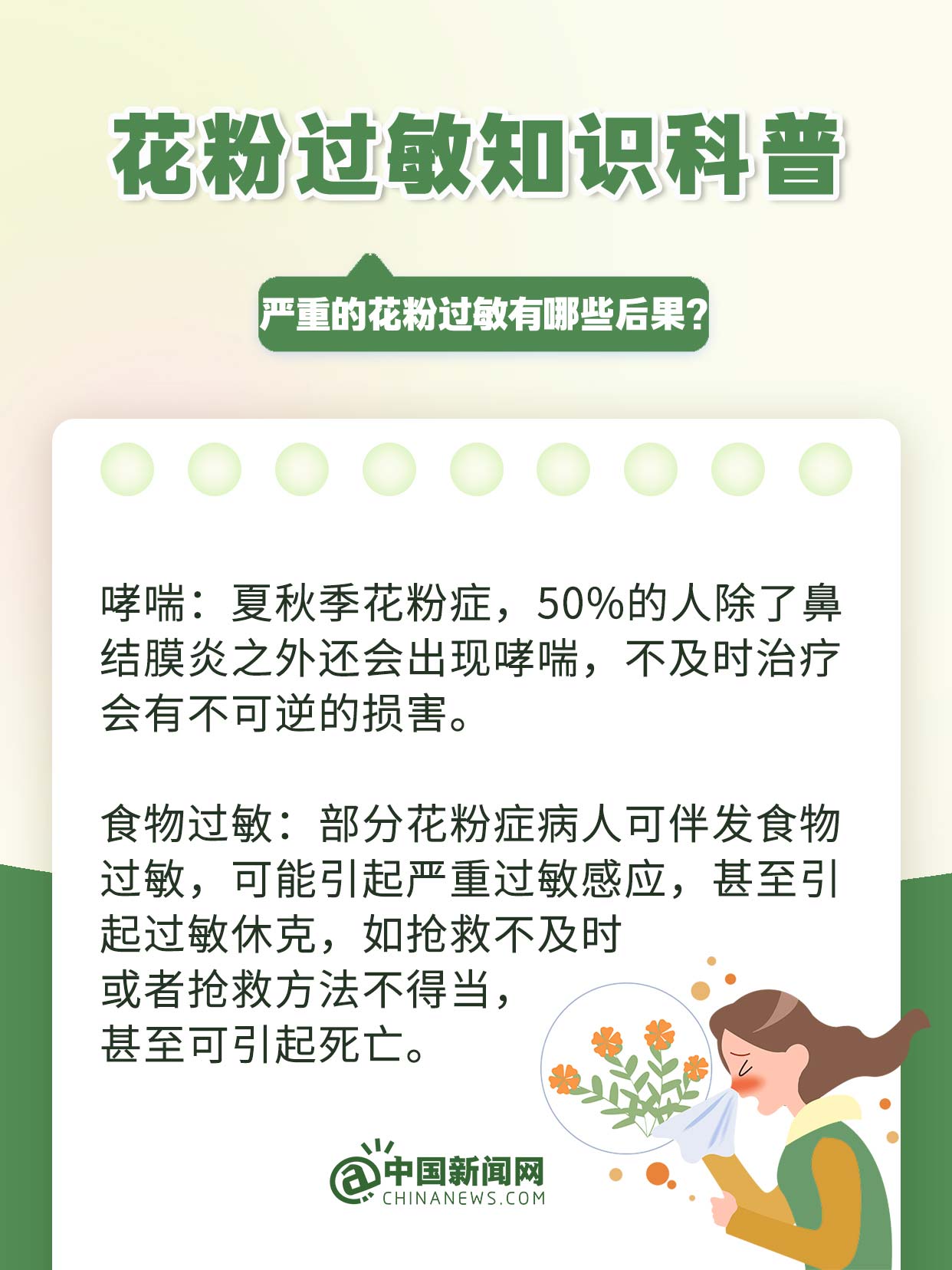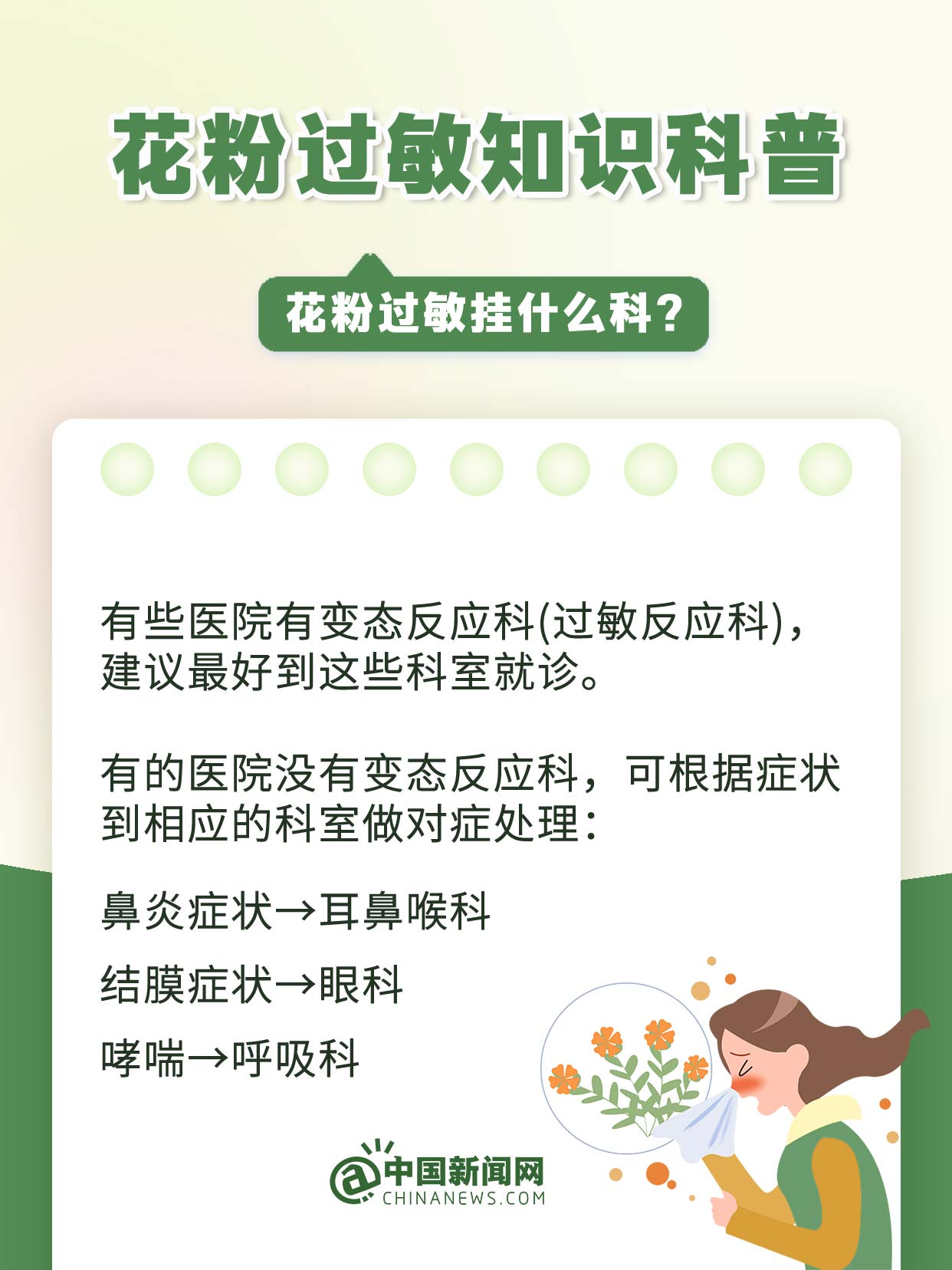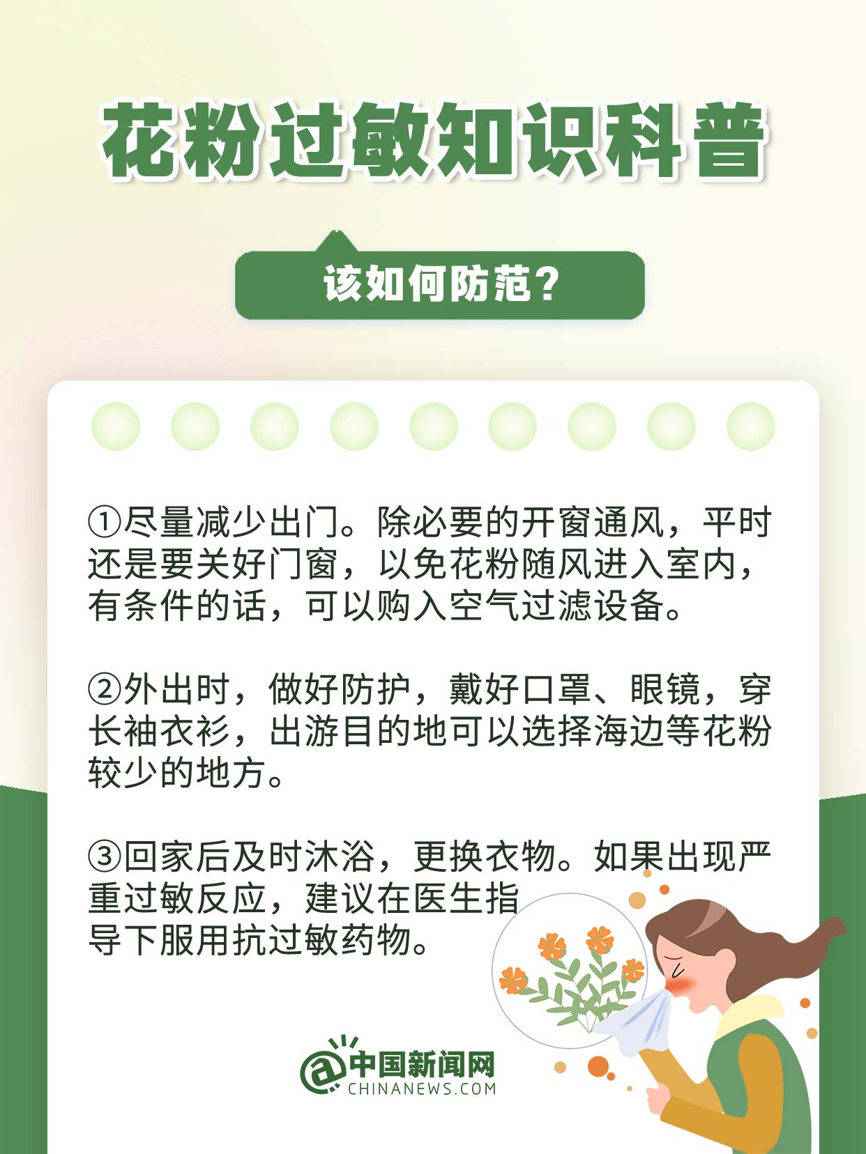 中新網(wǎng)3月19日電 萬物復(fù)蘇、草長鶯飛的春天,花粉過敏群體卻可能天天“一把鼻涕一把淚”。花粉過敏不是小事,若不及時(shí)治療或拖延不治,很容易惡化為慢性哮喘、鼻咽炎、結(jié)膜炎、肺炎等呼吸系統(tǒng)疾病。易過敏人群該如何防范?發(fā)生過敏如何治療?戳↓