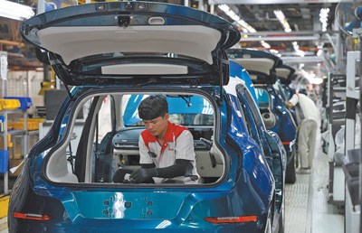 今年1月,中國(guó)車企長(zhǎng)城汽車旗下電動(dòng)汽車歐拉好貓?jiān)谔﹪?guó)羅勇新能源汽車制造基地正式下線,成為泰國(guó)首款本土量產(chǎn)的純電車型,將加速泰國(guó)汽車行業(yè)電氣化轉(zhuǎn)型。圖為該制造基地的生產(chǎn)車間內(nèi),工人在進(jìn)行汽車裝配作業(yè)。