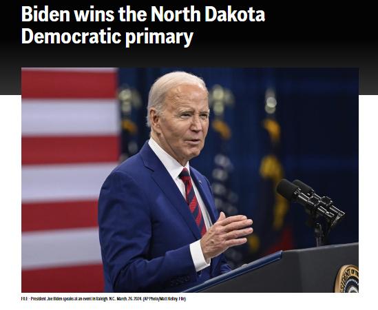 中新網(wǎng)3月31日電 據(jù)美聯(lián)社報道,當?shù)貢r間30日,根據(jù)計票結(jié)果顯示,美國現(xiàn)總統(tǒng)拜登贏得2024年美國總統(tǒng)選舉北達科他州民主黨初選。