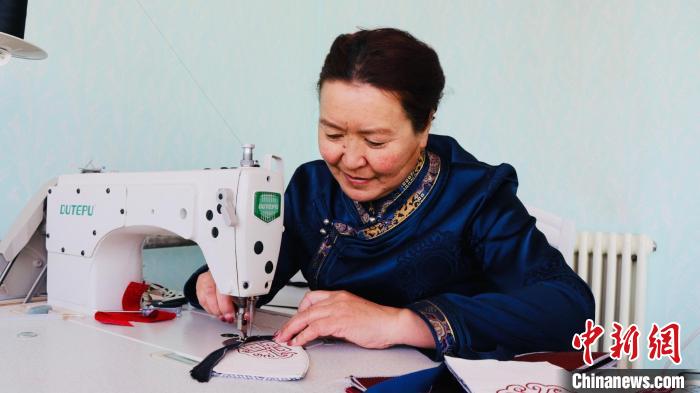 “我非常希望把蒙古族刺繡文化傳承下去,把農(nóng)牧民婦女都帶動起來,讓她們好好去做,這樣不但能增加她們的收入,還能傳承民族文化?!鼻嗪J∶Q率墟厮沟露济晒艂鹘y(tǒng)服飾工作室負責人斯琴說。