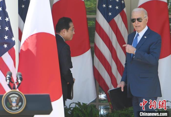 當(dāng)?shù)貢r(shí)間4月10日,美國(guó)總統(tǒng)拜登與來(lái)美國(guó)事訪問的日本首相岸田文雄在白宮舉行會(huì)晤。圖為雙方出席聯(lián)合記者會(huì)。中新社記者 陳孟統(tǒng) 攝