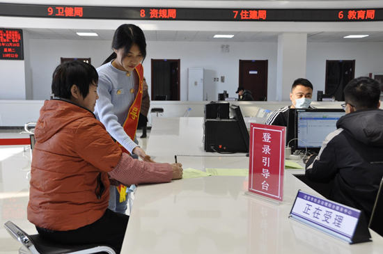 遷安市社會(huì)治理綜合服務(wù)中心工作人員引導(dǎo)群眾填表。 商立超攝