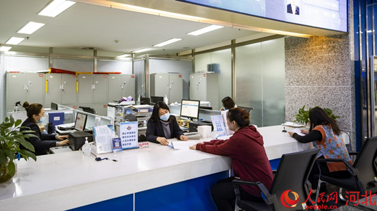 企業(yè)員工正在“落地即開(kāi)工”專項(xiàng)審批窗口辦理業(yè)務(wù)。 季春天攝