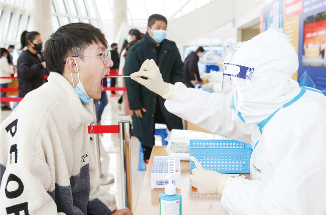 連日來,金華東陽醫(yī)護(hù)人員陸續(xù)來到一些學(xué)校給學(xué)生做核酸檢測,讓他們不出校門就拿到核酸檢測報(bào)告。大學(xué)生寒假返鄉(xiāng)高峰期來臨,面對(duì)復(fù)雜的疫情防控形勢,不少地方要求必須持核酸檢測陰性報(bào)告才能返鄉(xiāng)。(李建林)