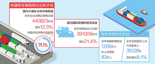 2021年是我國構建新發(fā)展格局的起步之年。面對復雜嚴峻的國際環(huán)境和國內(nèi)疫情多發(fā)散發(fā)等多重考驗,立足超大規(guī)模市場優(yōu)勢,持續(xù)深化改革開放,積極暢通經(jīng)濟內(nèi)外循環(huán),構建新發(fā)展格局邁出新步伐。