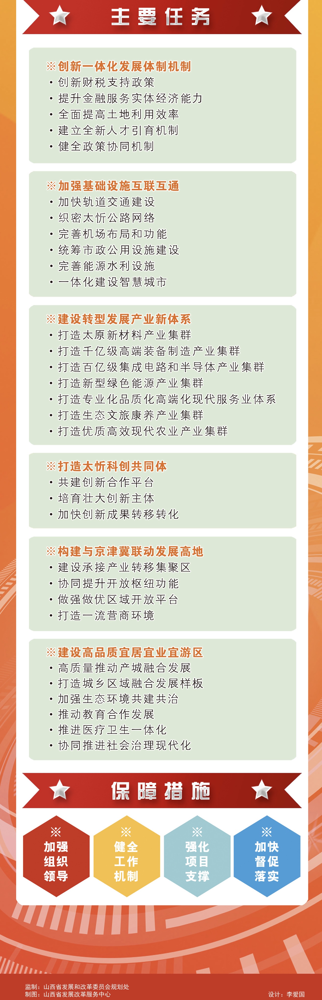 《指導(dǎo)意見(jiàn)》謀劃確定了太忻一體化經(jīng)濟(jì)區(qū)的實(shí)施范圍,提出了融入京津冀和服務(wù)雄安新區(qū)重要走廊、中部城市群發(fā)展隆起地、全省先進(jìn)制造業(yè)集聚地、世界級(jí)旅游康養(yǎng)目的地、生態(tài)文明建設(shè)示范區(qū)等五大戰(zhàn)略定位和“一軸雙核多組團(tuán)”的空間布局,分2025年、2035年兩個(gè)時(shí)間節(jié)點(diǎn)明確了發(fā)展目標(biāo),部署了六個(gè)方面的重點(diǎn)任務(wù)。