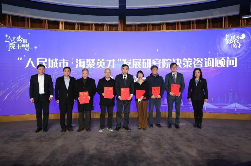 會上,人民城市海聚英才發(fā)展研究院舉行了決策咨詢顧問聘任儀式。市委組織部人才處處長譚樸珍、楊浦區(qū)委書記謝堅鋼為金力、陳杰、汪品先、莊松林、黃崇祺、褚君浩院士頒發(fā)聘書;楊浦區(qū)人大常委會主任程繡明、區(qū)委副書記周海鷹為林元培、穆穆、常青、李兆申、徐祖信、李俊院士頒發(fā)聘書。