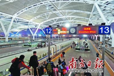 據(jù)廣鐵集團(tuán)介紹,今年春運(yùn)期間預(yù)計(jì)發(fā)送旅客4650萬人次,同比增加587.2萬人次,同比增長14.5%。春運(yùn)開始后,客流增長迅速,1月24日,預(yù)計(jì)廣東省節(jié)前春運(yùn)客流達(dá)最高峰,發(fā)送旅客132萬人次,同比增加48.3萬人次,增長57.7%。