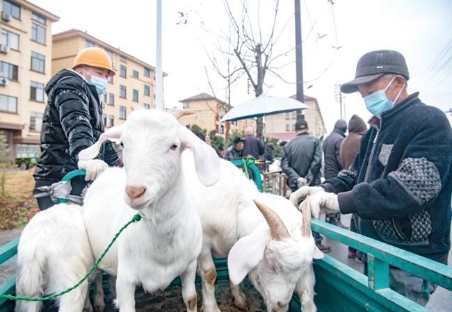 1月24日,金華市金義新區(qū)赤松鎮(zhèn)仙橋臘月第一個(gè)活羊集市開市,各地農(nóng)戶運(yùn)來自家飼養(yǎng)的活羊上市交易。(時(shí)寬兵)