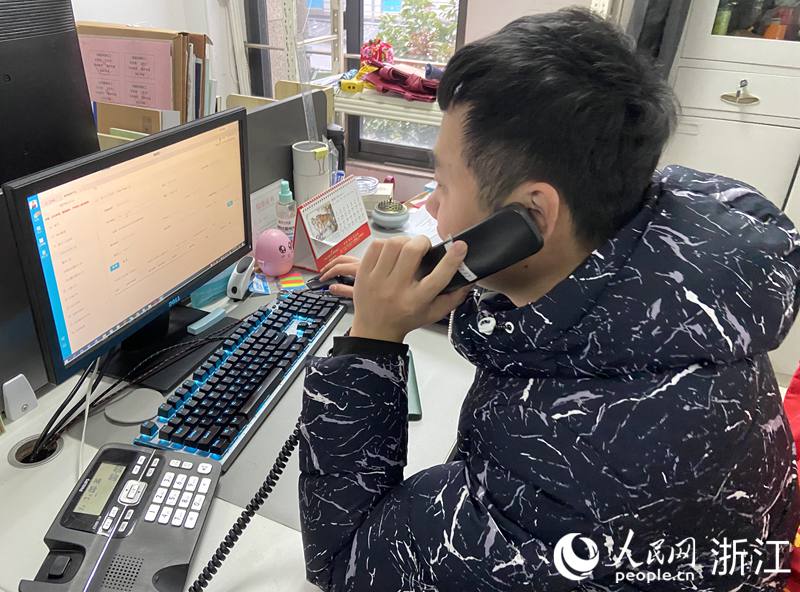 接到返鄉(xiāng)咨詢電話,白塔嶺社區(qū)工作人員耐心回復(fù)。人民網(wǎng) 方彭依夢攝