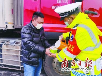 交警為旅途中的司機提供便民服務(wù)。 通訊員供圖