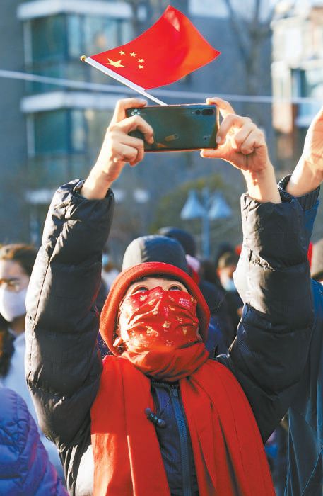 昨天,“重啟”的百旺茉莉園一期充滿了新年的喜慶,在小區(qū)南門廣場(chǎng)處,孩子們和居民們一起高唱《歌唱祖國》《明天會(huì)更好》,表達(dá)感激和喜悅之情。本報(bào)記者 王海欣攝