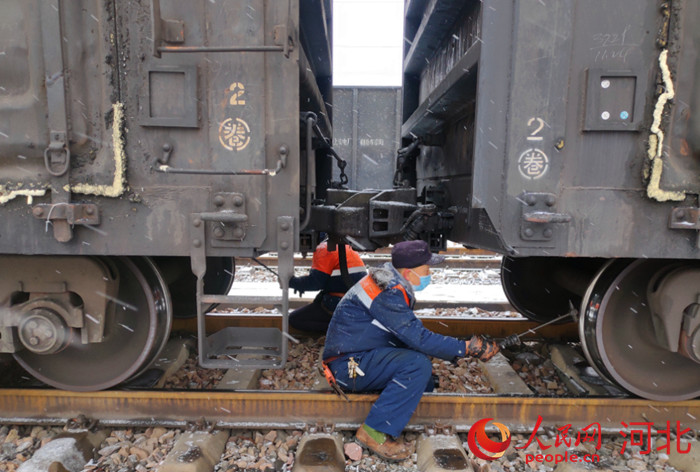 人民網(wǎng)石家莊1月28日電 春節(jié)臨近,當(dāng)旅客們坐上列車,準(zhǔn)備與家人團(tuán)聚時(shí),有這樣一群人默默地為平安春運(yùn)保駕護(hù)航,他們是專為鐵路車輛“診病療傷”的鐵路車輛檢車員。