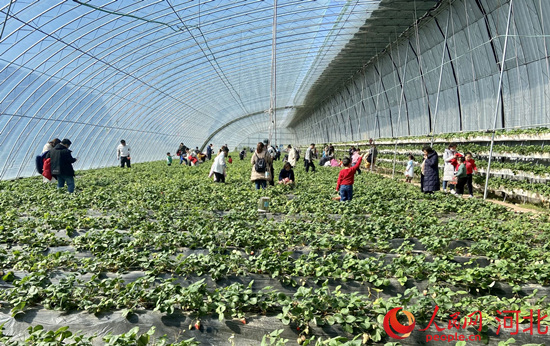 正定采摘大棚內(nèi),市民朋友在采摘草莓,體驗(yàn)農(nóng)耕之樂(lè)。 人民網(wǎng) 付兆颯攝