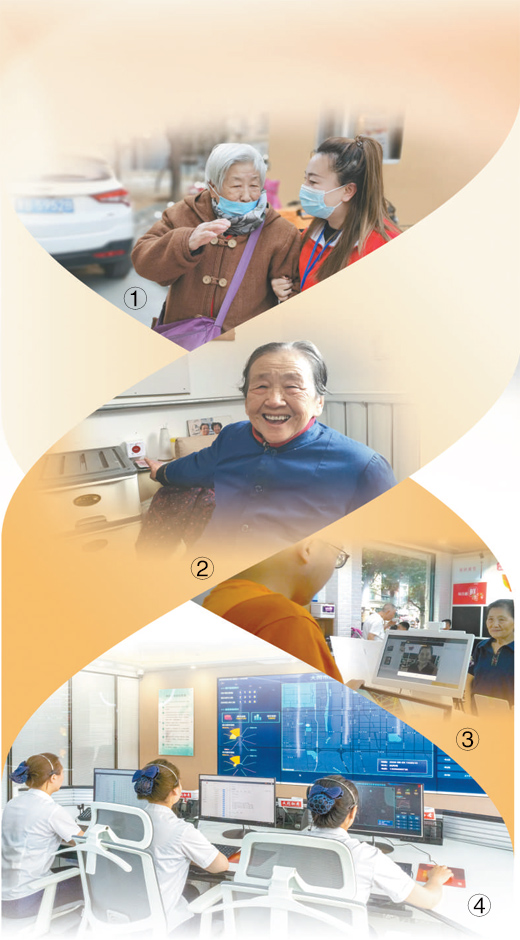 圖①:山西省大同市助老服務(wù)人員陪護(hù)老人出行。