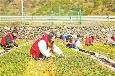 2月24日,在杭州淳安縣汾口鎮(zhèn)百畝畈村茶葉育苗基地,黨員志愿者與茶農(nóng)一道搶抓農(nóng)時(shí)培管茶苗,穿梭在育苗茶地中進(jìn)行除草、順苗、施肥、壘溝等管理工作,并將出圃茶苗銷往外地。