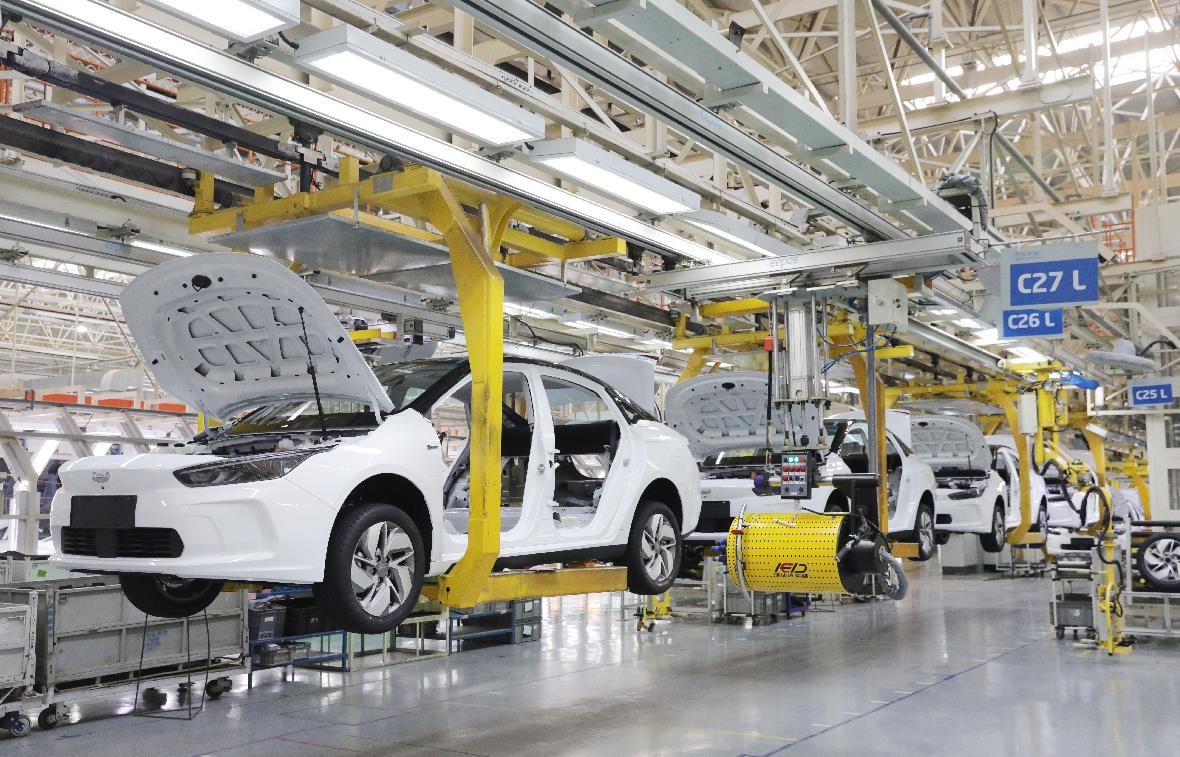 春節(jié)假期剛過(guò),在吉利汽車晉中公司的生產(chǎn)車間里,工人們正在為即將出廠的新能源車進(jìn)行避震試驗(yàn),司機(jī)駕駛新車開(kāi)過(guò)車間的顛簸路段,檢測(cè)車輛行進(jìn)中的平穩(wěn)性能。