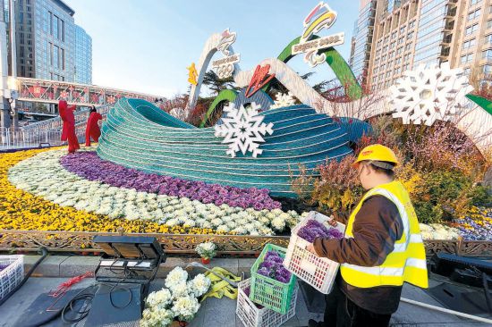 為冬殘奧會(huì)進(jìn)行景觀布置 14萬株“超級(jí)鮮花”擺上街頭