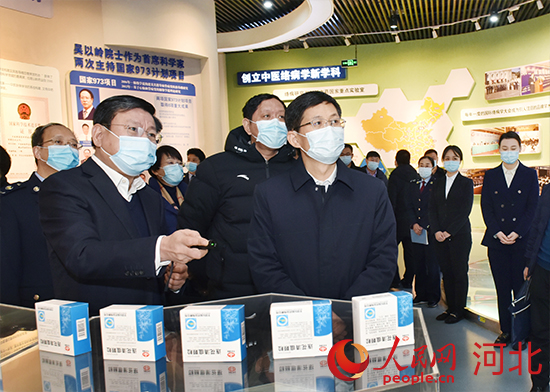 河北省稅務局黨委書記、局長程俊峰走訪全國人大代表、石家莊以嶺藥業(yè)股份有限公司總經(jīng)理吳相君。 河北省稅務局供圖