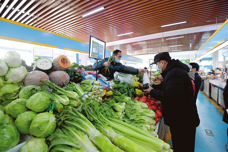 3月2日,太原市迎澤區(qū)惠民市場(chǎng)內(nèi),市民正在購(gòu)買(mǎi)蔬菜。據(jù)了解,該市場(chǎng)嚴(yán)格執(zhí)行疫情防控措施,目前市場(chǎng)內(nèi)菜價(jià)平穩(wěn)、貨源充足,有效保障轄區(qū)居民的生活需求。(記者阮洋攝)