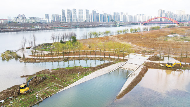 3月7日,金華市區(qū)五百灘公園西側(cè)區(qū)塊上,挖掘機(jī)正在清理沿江地帶。目前,五百灘公園景觀提升改造工程正在進(jìn)行中。據(jù)了解,西側(cè)區(qū)塊將打造成花海,局部打造成濕地景觀,并對(duì)沿江樹木進(jìn)行修整,修繕欄桿,優(yōu)化親水平臺(tái),設(shè)置景觀座椅,修建濱水棧道,拓展活動(dòng)空間,為市民打造一個(gè)植被豐富、風(fēng)景宜人的親水休憩游玩空間。(胡肖飛)