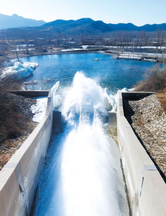 上圖:密云水庫經(jīng)潮河輸水隧洞向潮白河生態(tài)補水。 張敏楠攝