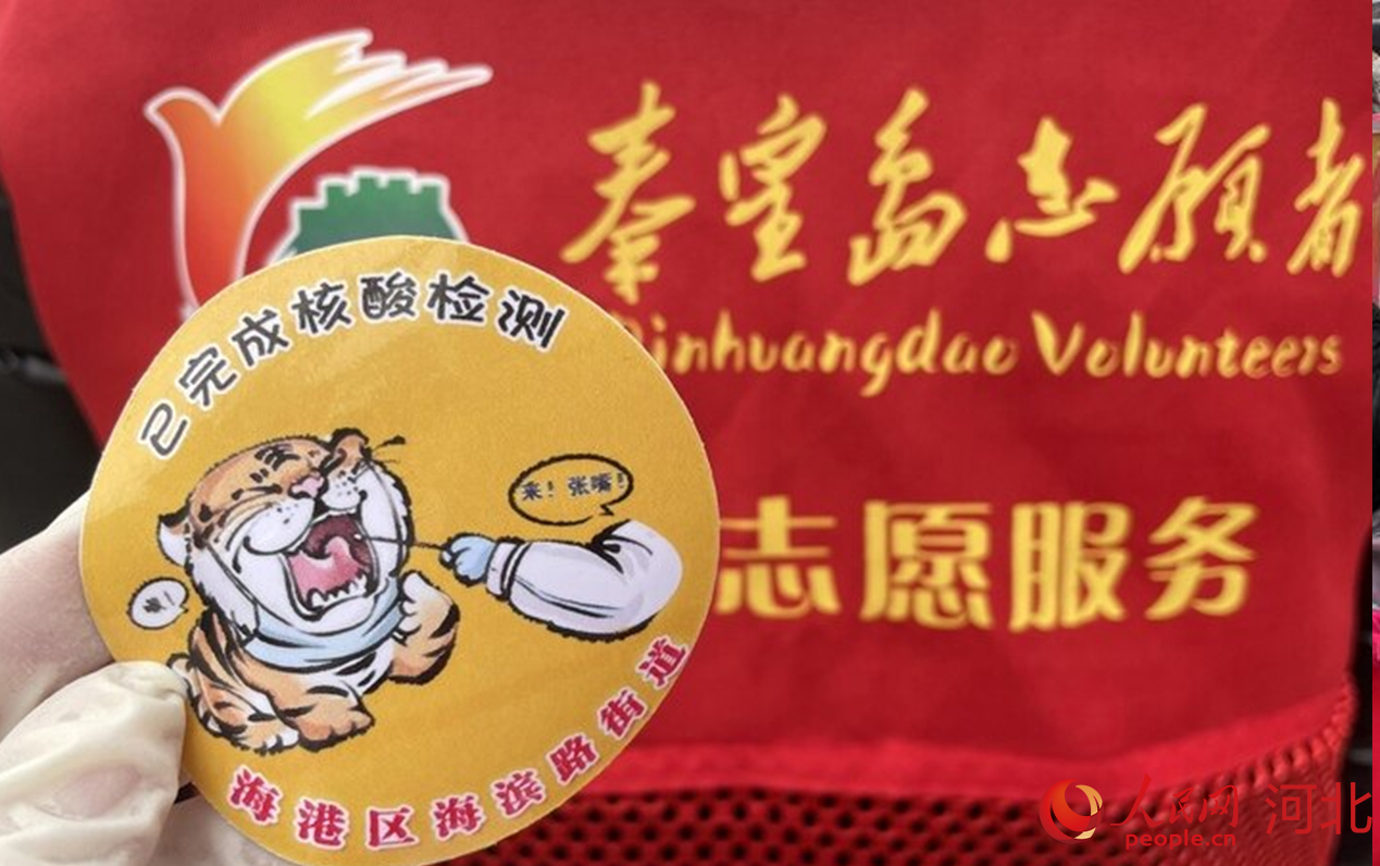 為了提高孩子們參與配合意識(shí),海濱路街道特意制作了“兒童專屬獎(jiǎng)勵(lì)貼紙”,發(fā)給完成檢測的孩子。貼紙上卡通小老虎檢測核酸的樣子很可愛,孩子們領(lǐng)到貼紙,都一臉自豪地跟志愿者互相豎大拇指。