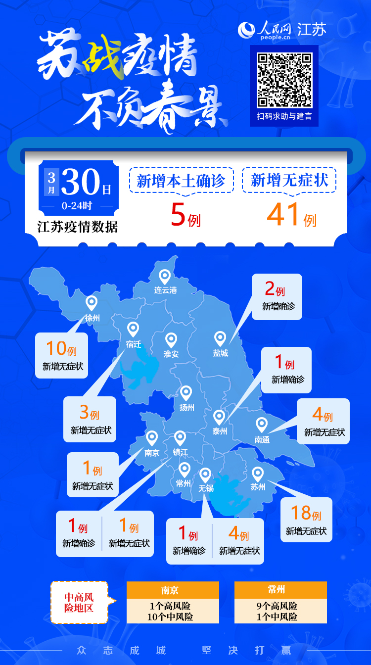 3月30日江蘇新增本土確診病例5例 本土無(wú)癥狀感染者41例