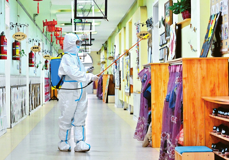 4月1日一早,呂梁市離石區(qū)實(shí)驗(yàn)幼兒園工作人員正在對(duì)園區(qū)進(jìn)行消殺。離石區(qū)教科局嚴(yán)把防疫責(zé)任關(guān)、技術(shù)關(guān)、排查關(guān)、消毒關(guān)、落實(shí)關(guān),快部署快落實(shí)疫情防控各項(xiàng)措施,織牢疫情防控網(wǎng),為孩子們創(chuàng)造一個(gè)安全、舒適、健康的學(xué)習(xí)生活環(huán)境。(記者劉通攝)