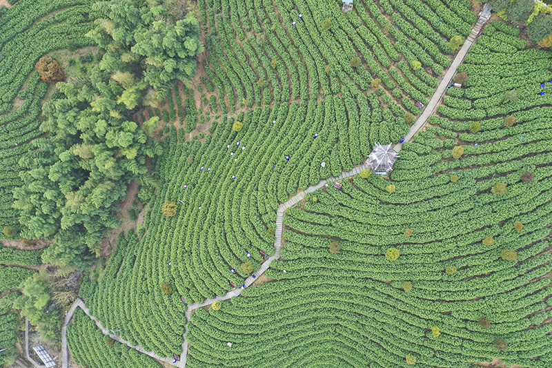 放眼望去,宣城市旌德縣白地鎮(zhèn)一彎彎一排排的茶樹錯落有致。江建興攝