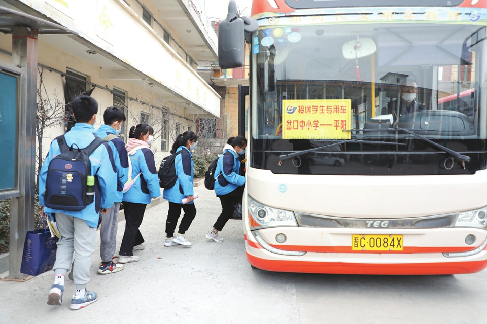 2013年,陽泉市平定縣實行交通惠民“暖心工程”,開通了免費接送寄宿制學生專用車,每周五下午到校接送學生回家,周一早晨再接送他們安全返校。截至目前,平定公交公司共開通接送寄宿生專線72條,投入運營車輛95臺,覆蓋全縣10個鄉(xiāng)(鎮(zhèn))的202個村莊、31所學校、2600余名寄宿制學生。圖為近日,該縣岔口中學操場上,分散居住在十里八鄉(xiāng)的寄宿制學生正準備乘車回家。(張春林攝)