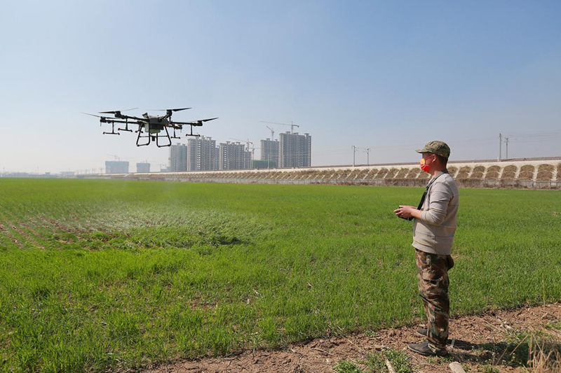 “2022年,我們合作社種植了3000畝小麥,為加強田間管護,我們與農(nóng)時賽跑,用科技助力糧食豐產(chǎn)豐收。通過推廣使用植保無人機作業(yè),大大提高了田間管護效率。根據(jù)提前設定好的飛行速度、作業(yè)軌跡,植保無人機就會按設定程序開展作業(yè)。當前植保無人機一天作業(yè)面積能達到600畝?!必S田種植專業(yè)合作社負責人王少錁說。