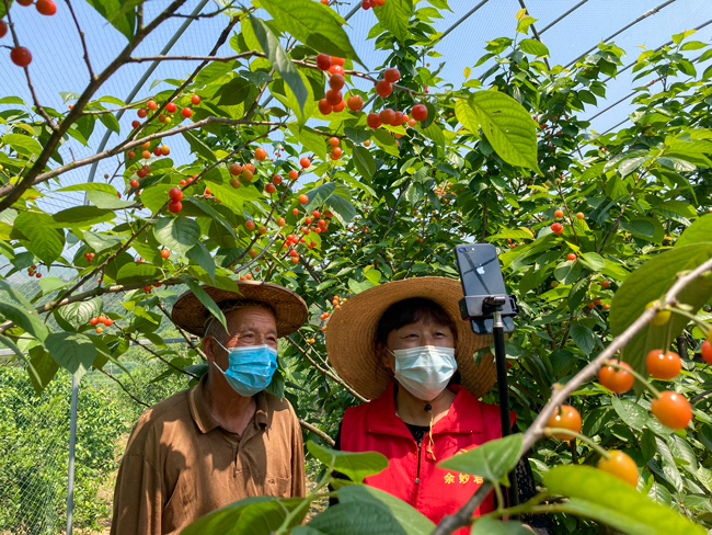 近日,在金華市金東區(qū)赤松鎮(zhèn)虎巖村,“短柄”櫻桃成熟,猶如一盞盞小燈籠掛在枝條,村黨員志愿者網(wǎng)上幫助農(nóng)戶吆喝。虎巖村黨支部書記王基林介紹說,全村櫻桃種植面積1300多畝,品種有傳統(tǒng)的短柄、黑珍珠以及新引進的紅妃,櫻桃銷售收入成為村民的一項主要經(jīng)濟來源,這幾天天氣晴好,櫻桃成熟快,一星期后上市量更大,采摘期持續(xù)到5月初。2022年為了防控新冠疫情,村黨支部組織黨員和志愿者把農(nóng)戶采摘的櫻桃派送到指定地點,方便預(yù)訂的客戶拿取。(時寬兵)