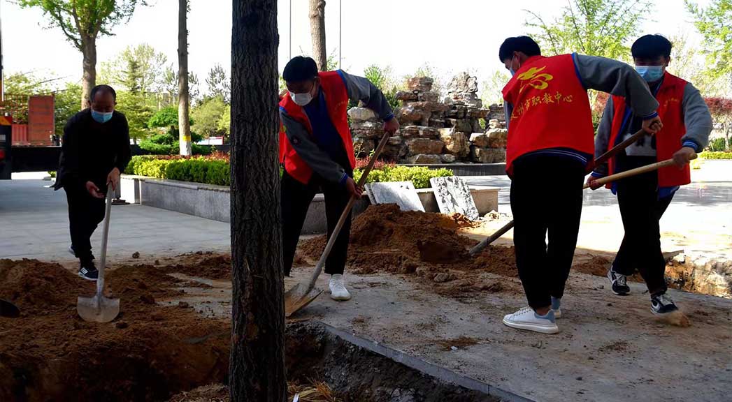 種樹就是種幸福,愛樹就是愛子孫。4月15日,市職教中心主教學(xué)樓前人頭攢動(dòng),學(xué)校黨總支書記么柱利、常務(wù)副校長劉紅芹與閆怡凡、陳柯安等10余名同學(xué)栽下一棵棵銀杏樹,共同收獲勞動(dòng)的喜悅。