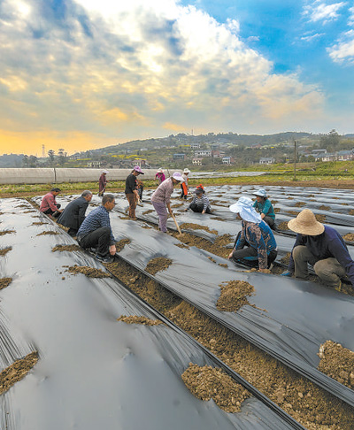 重慶市南川區(qū)南平鎮(zhèn),農(nóng)民正在鋪設全生物降解膜。