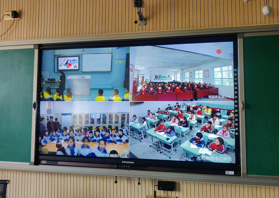 “同學(xué)們,我們今天學(xué)習(xí)《文房四寶》,請看大屏幕......”當(dāng)臨汾市第一小學(xué)三年級的陳老師話音剛落,同時在課的左權(quán)麻田中心學(xué)校、呂梁方山縣積翠小學(xué)、忻州市岢嵐縣桃園聲實(shí)驗(yàn)小學(xué)的教室里就響起了一陣陣地驚嘆聲?!靶滦涂臻g”里,四個相距百公里的200多名在校師生正沉浸在“晉享云課堂”教學(xué)中。