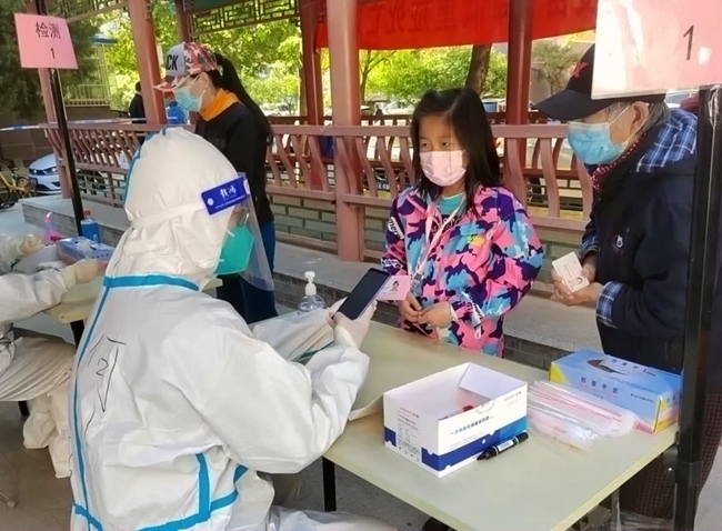 “讓我去封控區(qū),我年輕,身體好!”4月26日,紅廟北里小區(qū)部分區(qū)域?qū)嵤┓猓ü埽┛?,朝陽區(qū)八里莊街道社區(qū)衛(wèi)生服務(wù)中心護(hù)士劉彩麗主動請纓,就這樣,22歲的劉彩麗和其他4名同事承擔(dān)起5個單元門的核酸采樣任務(wù)。