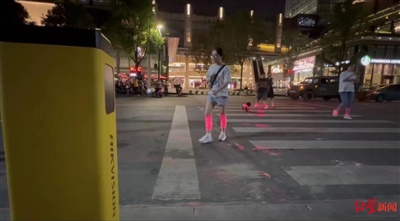 近日,在成都市溫江區(qū)人和東街散步的小蔡剛走上斑馬線,突然發(fā)現(xiàn)小腿上全是紅色光線,斑馬線四周也瞬間亮了許多,遠處駛來的小轎車發(fā)現(xiàn)“自帶光環(huán)”的小蔡也早早放慢了車速。