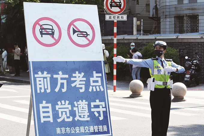 “今年考生家長大多選擇地鐵、公交等公共交通工具到達(dá)考點,周邊居民和在附近上班的人員也都能理解配合,高考現(xiàn)場環(huán)境一年比一年好?!蹦暇┙痪淮箨爤?zhí)勤二中隊中隊長錢臣表示??键c現(xiàn)場,交警也對非機動車駕駛?cè)藛T進行友情提醒,請他們不要按喇叭。在南京市第一中學(xué)考點,南京交警三大隊副大隊長桂子振告訴記者,“下午1點,我們就在考點周邊路口安排3名民警巡邏?!痹诟骺键c周邊道路,交警均擺放了疏導(dǎo)車輛的交通標(biāo)志,并實時為考生提供幫助。