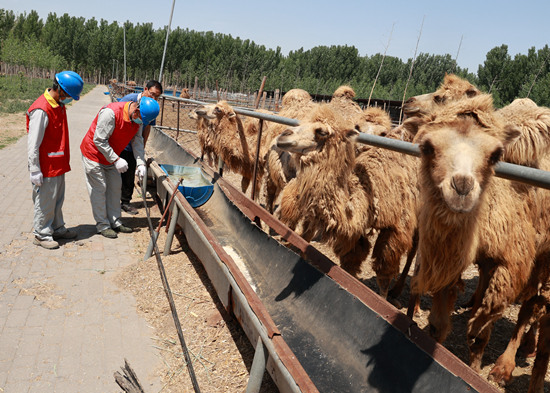 5月31日,國家電網(wǎng)冀北電力唐山“鋼鐵之魂”共產(chǎn)黨員服務(wù)隊(duì)隊(duì)員來到駱駝專業(yè)合作社檢查用電設(shè)備。 周宇翔攝