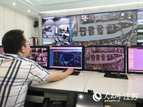 “我們現在觀察的是江都東閘引水情況、寶應泵站機組運行情況?!痹诮妓麡屑~南水北調江蘇集中控制中心,屏顯數字不時跳動變化,反饋著調水情況。據中心負責人介紹,這是南水北調江蘇智能調度系統(tǒng),通過運用云計算、大數據、物聯網等現代信息技術,建立動態(tài)監(jiān)測網絡,不斷提高水量優(yōu)化調度、遠程集中控制、智能管理決策、應急響應處置等水平。“主控制臺布置16臺工作站,可對江蘇境內南水北調新建工程的14座泵站、62臺主機組實時監(jiān)控。”