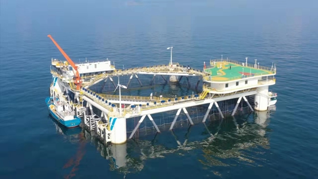 亞洲最大的深海智能網(wǎng)箱“經(jīng)海001號”。 中集來福士供圖