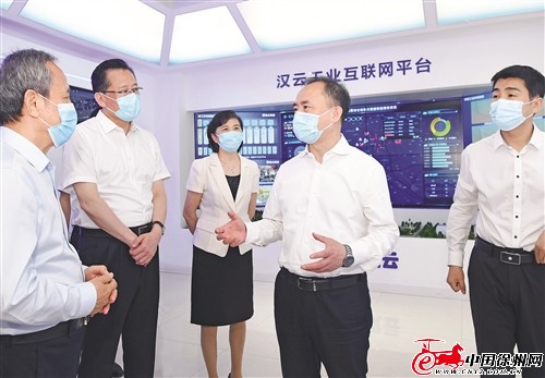 市委書記宋樂偉在徐工漢云技術(shù)股份有限公司,詳細了解關鍵技術(shù)、產(chǎn)品應用、工業(yè)互聯(lián)網(wǎng)平臺打造等情況。 本報記者 孫井賢 攝
