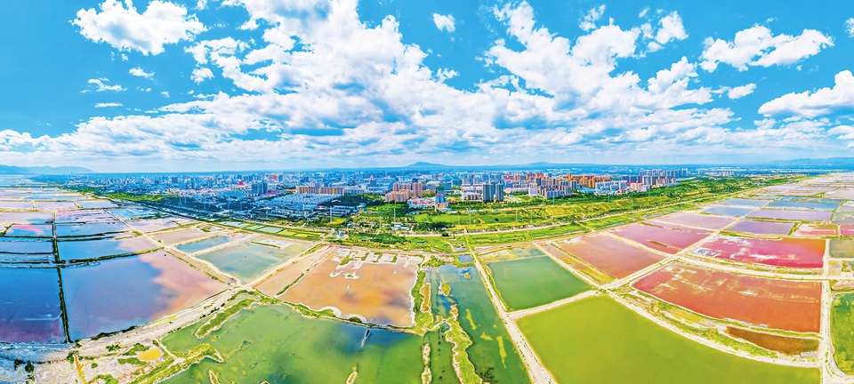 6月28日,運城市中心城區(qū),藍天白云與七彩鹽湖交相輝映,美不勝收。近年來,運城市緊緊圍繞綠色發(fā)展理念,加強鹽湖生態(tài)資源的保護和修復,將鹽湖打造成生物多樣的生態(tài)空間、風光旖旎的旅游目的地、愜意舒心的居民休憩地。(陳方斌攝)