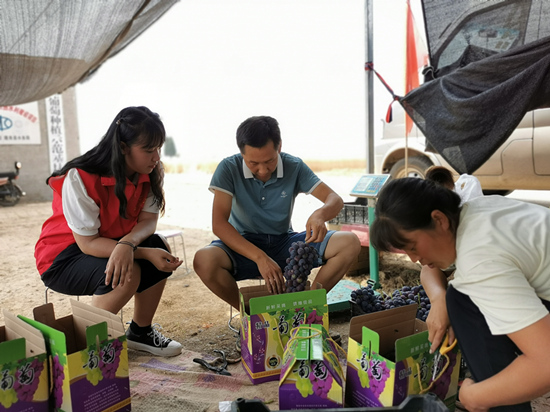 隆堯縣東良鎮(zhèn)安中村,利用“鄉(xiāng)村振興貸”種植的大棚葡萄喜獲豐收,種植戶正在包裝。 任學(xué)麗攝