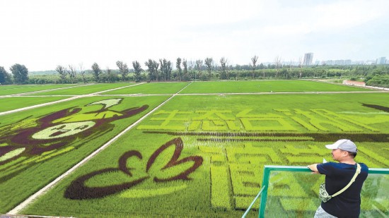 本報(bào)訊(記者 孫云柯)用大地田園作畫紙,用五彩水稻作畫筆。近日,通州區(qū)臺(tái)湖鎮(zhèn)稻小蟹藝術(shù)農(nóng)場(chǎng)內(nèi)的五彩稻田進(jìn)入最佳觀賞期,一幅水田阡陌、青翠宜人的生態(tài)田園畫卷徐徐展開(kāi)。
