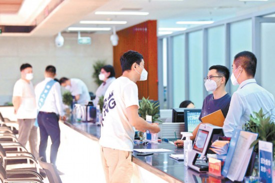 昨天,北京經(jīng)濟(jì)技術(shù)開發(fā)區(qū)政務(wù)服務(wù)大廳,工作人員正在熱情接待企業(yè)代表辦理相關(guān)業(yè)務(wù)。本報(bào)記者 和冠欣攝